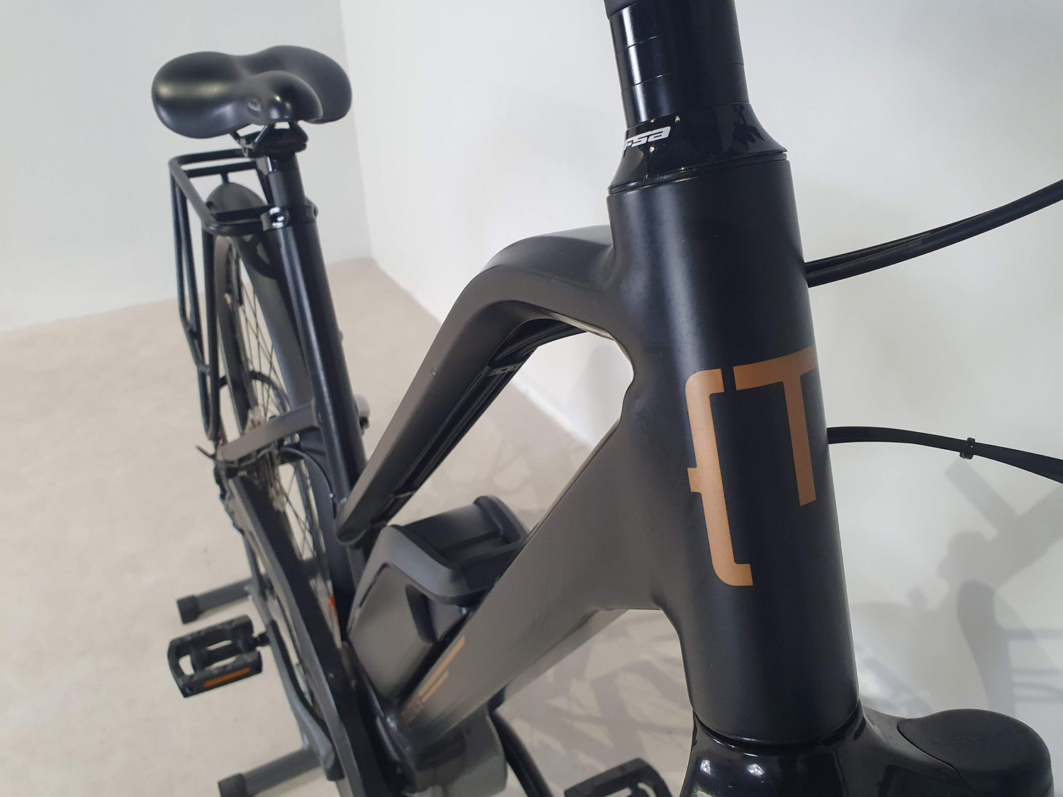 Le vélo est livré prêt à rouler, à l'exception des pédales à revisser et du guidon à tourner. Il contient le chargeur et les clés de la batterie, ainsi que tous les accessoires visibles sur les photos.