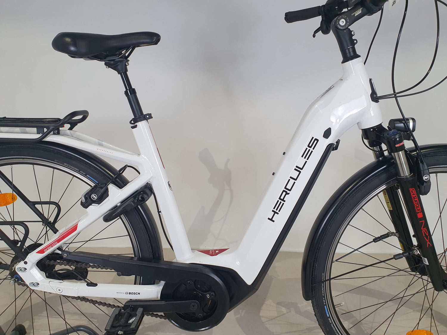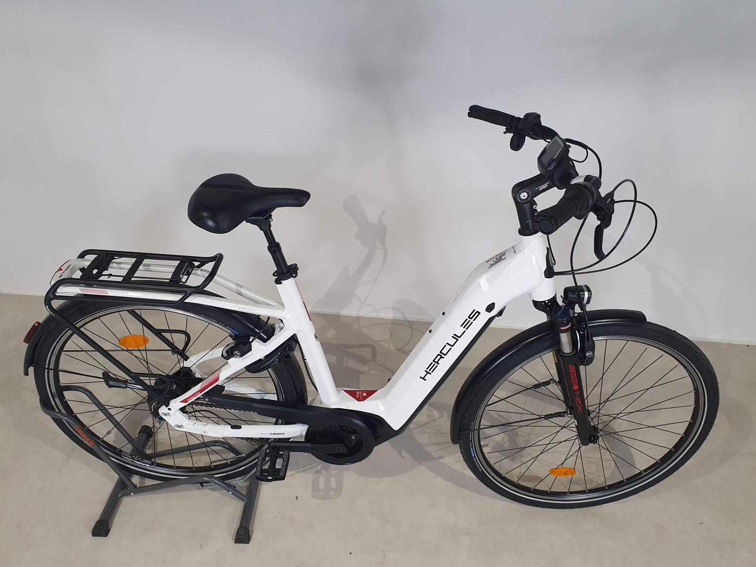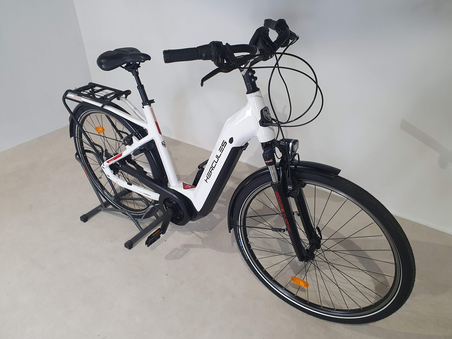 Le vélo est livré prêt à rouler, à l'exception des pédales à revisser et du guidon à tourner. Il contient le chargeur et les clés de la batterie, ainsi que tous les accessoires visibles sur les photos.