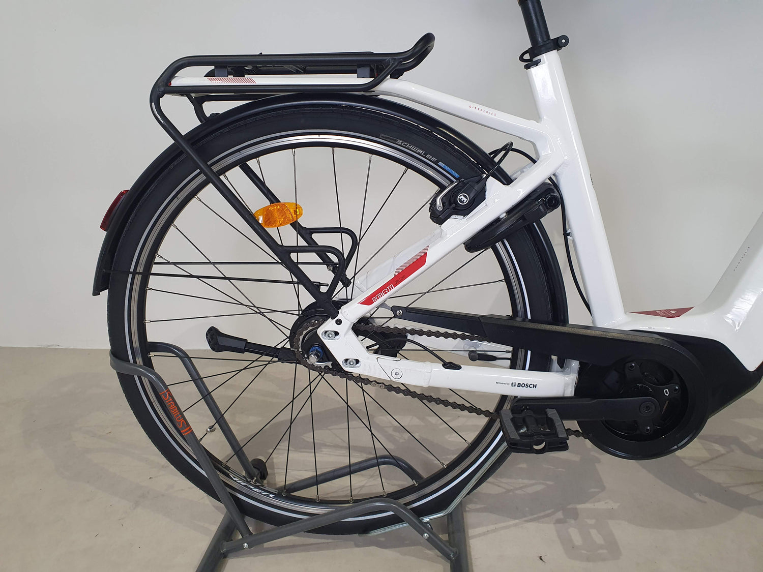 Le Roberta Deluxe I-F8 est un vélo de ville reconditionné parfait pour vos déplacements quotidiens et balades urbaines. Grâce à sa batterie de 625 Wh, profitez d’une autonomie comprise entre 70 et 90 km. Son moteur Bosch Active Line Plus, positionné au pédalier, offre une assistance fluide et efficace. Il est équipé d'un dérailleur Nexus. C'est donc simple, et demande très peu d'entretien. Ici on aime son cadre blanc sa selle amortie ! Le vélo est livré avec porte-bagage et garde-boue.