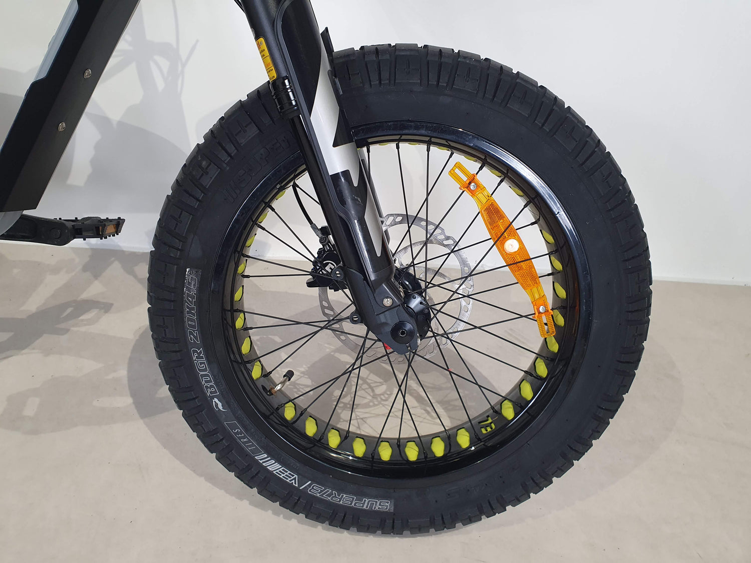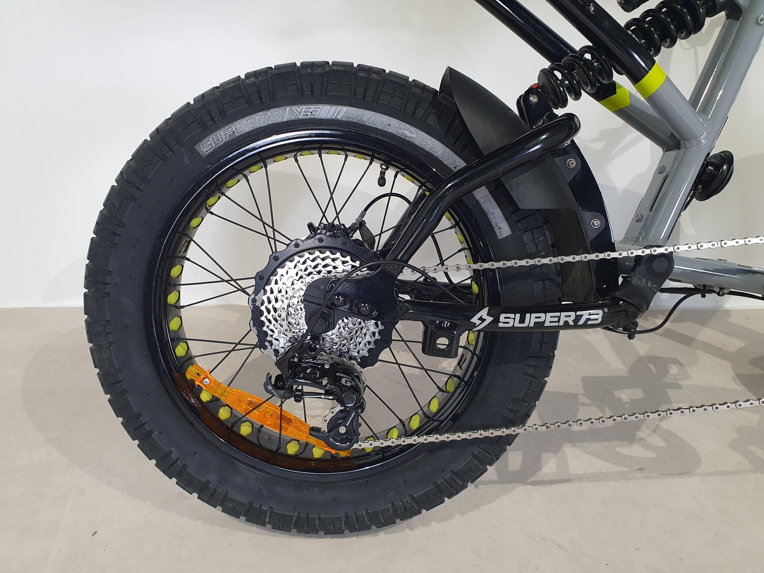 Le SUPER73 RX 2021, fatbike reconditionné, est parfait pour les amateurs d’aventure urbaine et de balades tout-terrain. Sa batterie puissante de 960 Wh offre une autonomie impressionnante de 100 à 120 km, idéale pour explorer la ville ou partir en escapade sans contrainte. Grâce à son moteur positionné sur la roue arrière, profitez d’une accélération dynamique et d’une conduite fluide sur tous types de terrains. Les freins à disques hydrauliques assurent une sécurité optimale avec un freinage réactif, même à grande vitesse. Sa taille unique et ses roues de 20 pouces garantissent une excellente maniabilité, tandis que son faible kilométrage (270 km) vous assure un vélo presque neuf. Ce modèle combine robustesse, confort et performance pour répondre à tous vos besoins quotidiens ou de loisirs. Le vélo présente des rayures sur le moteurs : voir photos. Le vélo est livré avec des garde-boue.