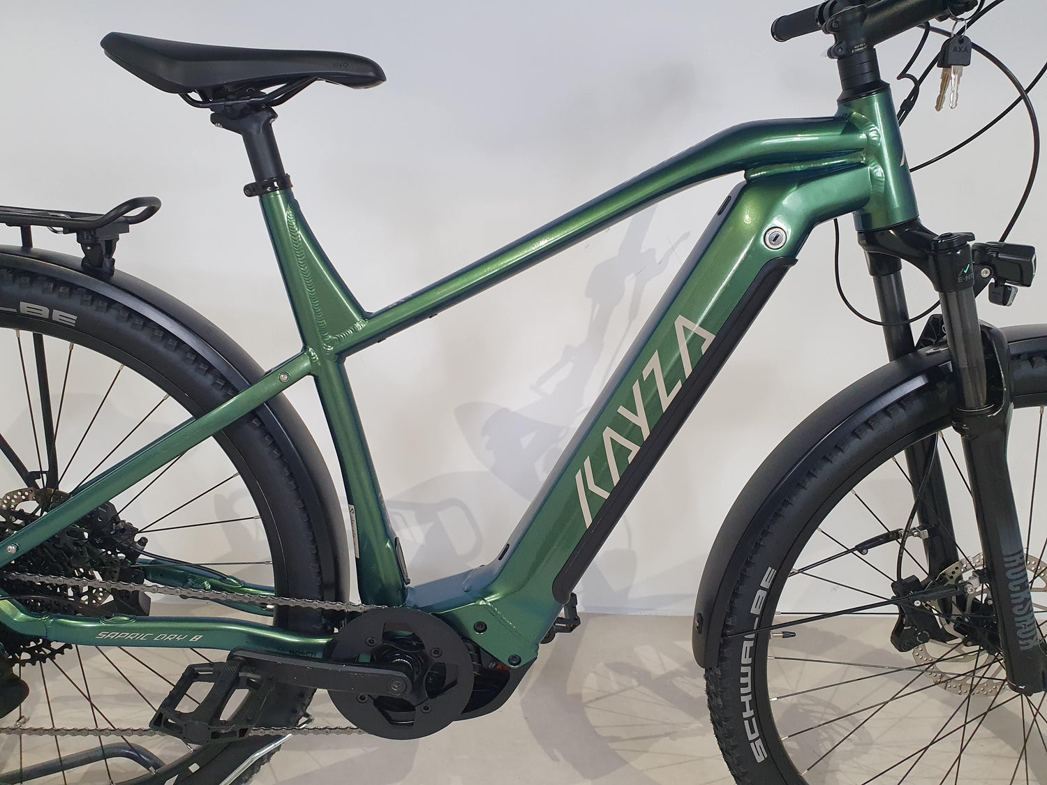 Le vélo est livré prêt à rouler, à l'exception des pédales à revisser et du guidon à tourner. Il contient le chargeur et les clés de la batterie, ainsi que tous les accessoires visibles sur les photos.