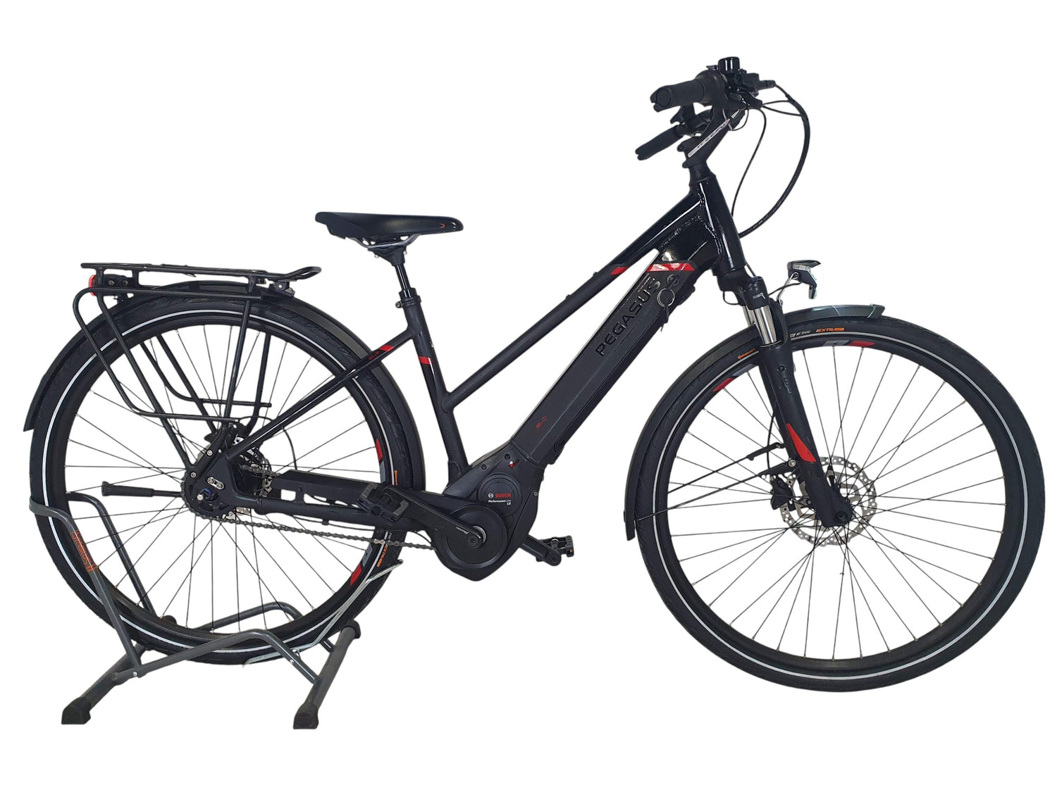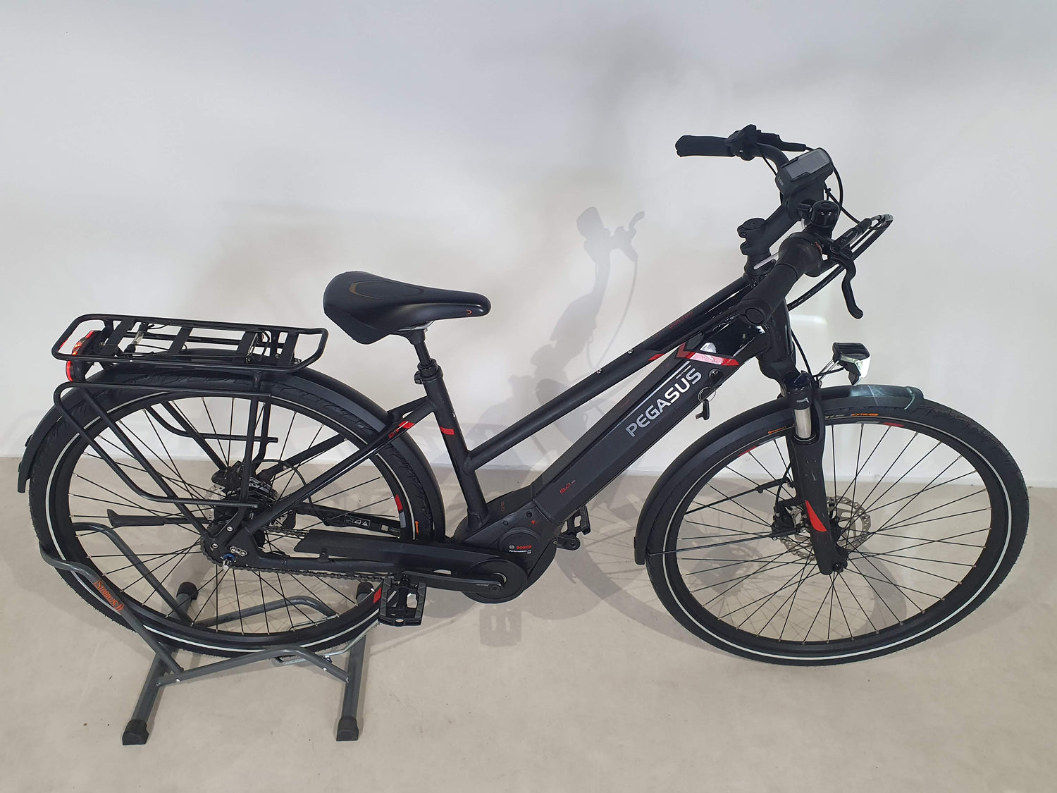 Le vélo est livré prêt à rouler, à l'exception des pédales à revisser et du guidon à tourner. Il contient le chargeur et les clés de la batterie, ainsi que tous les accessoires visibles sur les photos.
