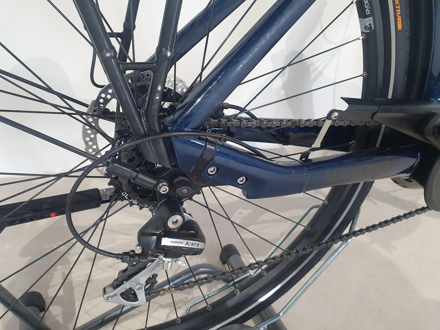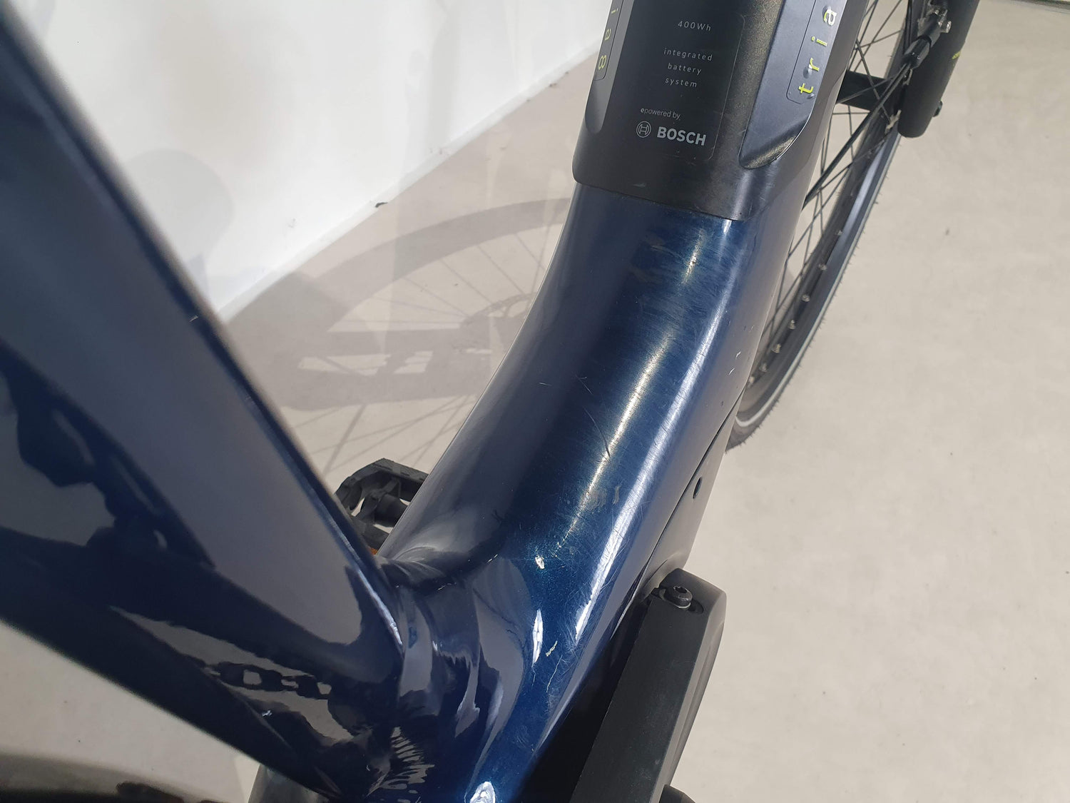 Le WINORA Tria 8, modèle 2022, est le vélo de ville reconditionné parfait pour vos déplacements quotidiens et balades urbaines. Grâce à son moteur Bosch Active Line Plus positionné au pédalier et sa batterie de 400 Wh intégrée dans le tube inférieur, il offre une assistance fluide et une autonomie comprise entre 50 et 70 km, idéale pour tous vos trajets en ville. Les freins à disques hydrauliques assurent une sécurité optimale, même en cas d’arrêt d’urgence. Sa transmission Shimano à 8 vitesses garantit des changements de vitesse précis et fiables, pour une expérience de conduite agréable au quotidien. Le vélo présente des traces d'utilisation sur le cadre (voir photos). Le vélo est livré avec porte-bagage et garde-boue;