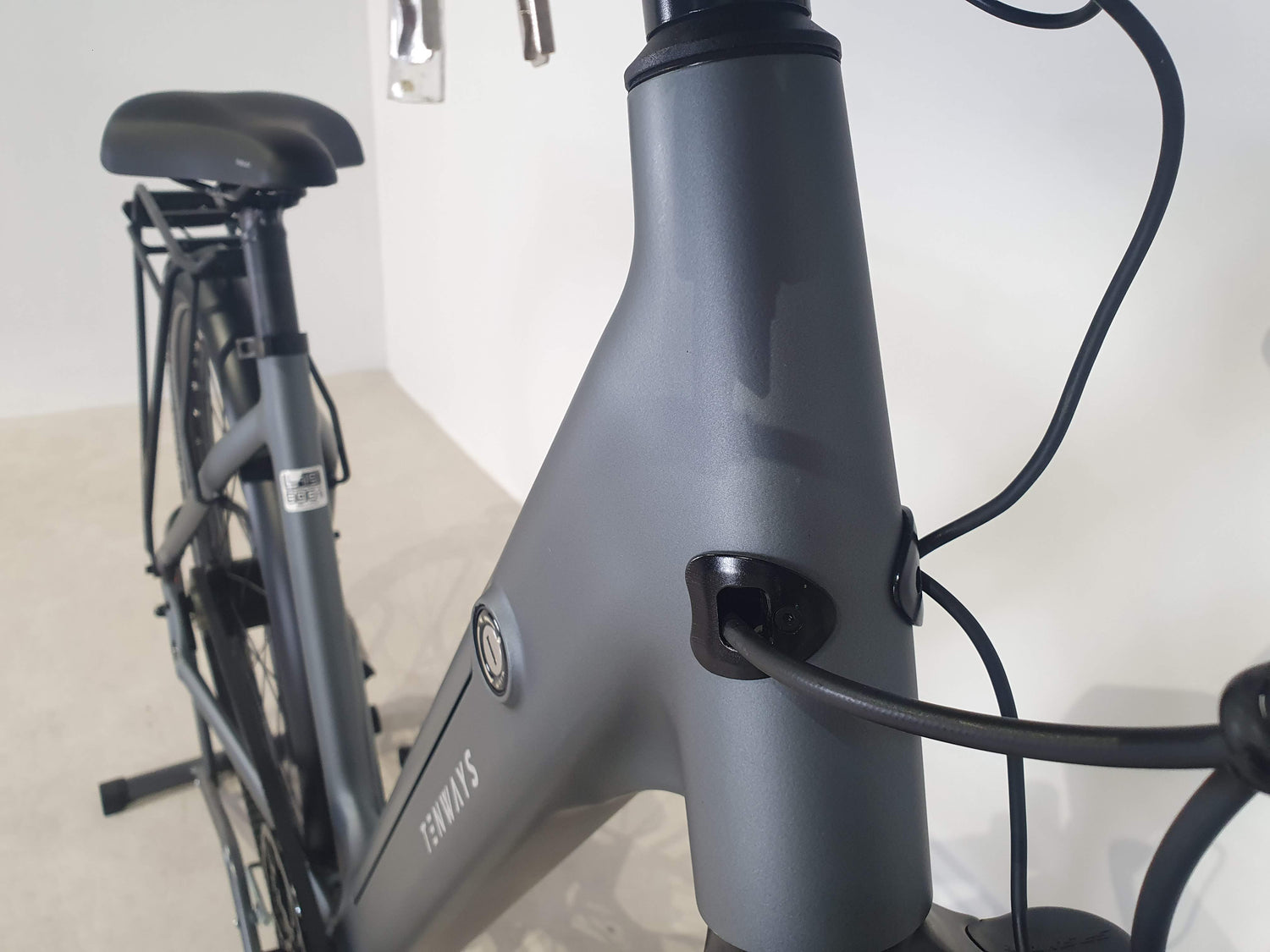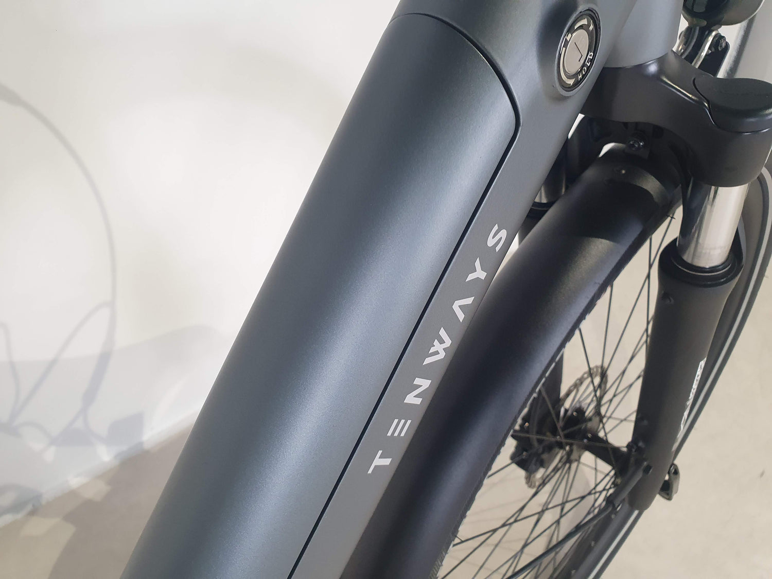 Le vélo est livré prêt à rouler, à l'exception des pédales à revisser et du guidon à tourner. Il contient le chargeur et les clés de la batterie, ainsi que tous les accessoires visibles sur les photos.